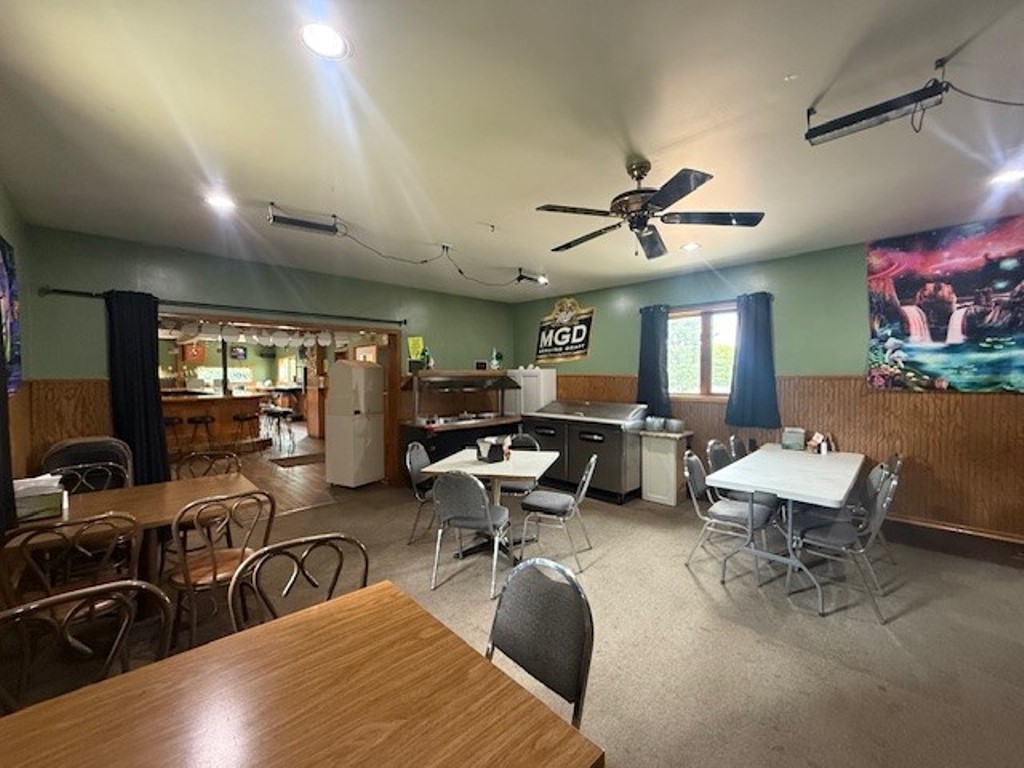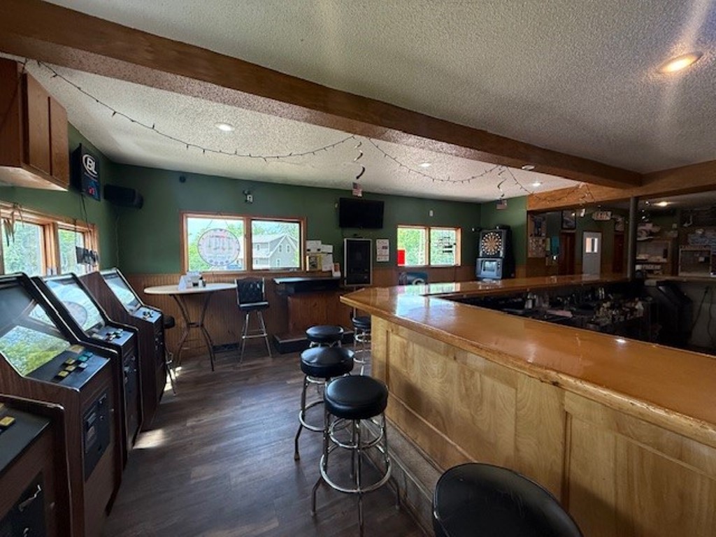 a residence. There is potential for a campground with the land that is available and the snowmobile trail goes through this property as well. Ample parking with room for volleyball courts. Currently there is a horse shoe area. Across the street is the Wisconsin River and the bridge that crosses is County Road E. Current owners have done many updates and the restaurant portion has a good seating section and the bar area has ample space with great access to the kitchen. Two updated restrooms have been added and lots of newer kitchen equipment as well as a walk in cooler. Turn key operation for someone looking to have their own business. The upper level of this property is currently partially gutted and ready for remodel if someone wanted to add a living quarters. Three spacious rooms in the upper level. Forced air furnace and central air unit were installed in 2020. There is also a wood burner outside that heats well in the winter. Property has Star Link and Hughes net for internet. Per zoning this is a fully shoreland district. Buyers are to verify any information with the county for their questions. A drilled well serves the property and holding tank with older system that is not on record per land records. Property has a lot of potential and is ready for new owners.